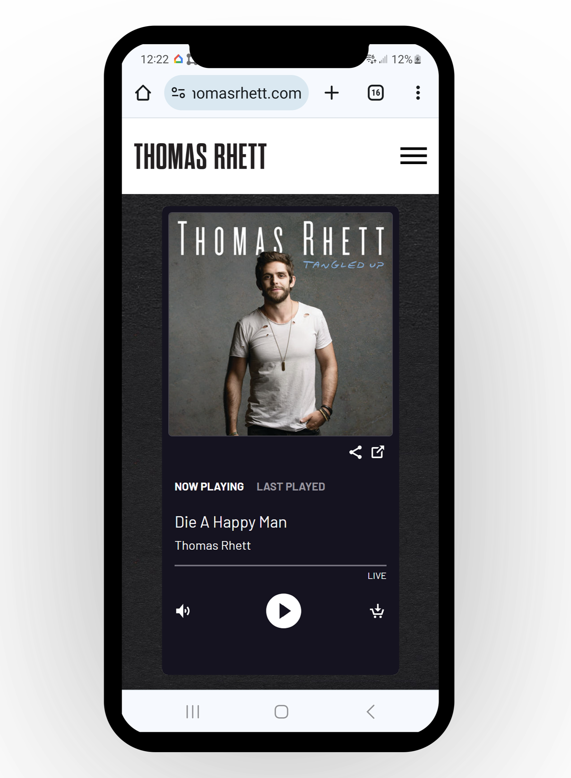 Smartphone displaying a branded streaming radio app on Jack Daniels website playing and Eric Church song. Jack Daniel's logo is visible at the top of the phone.